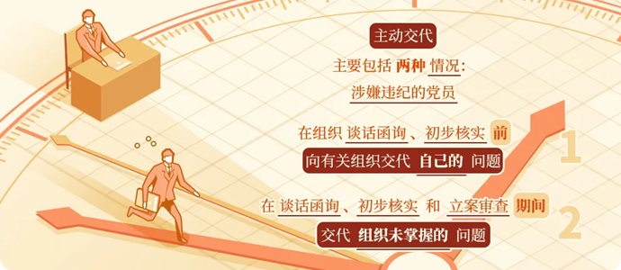 一是涉嫌違紀的黨員在組織談話函詢、初步核實前向有關組織交代自己的問題。在組織談話函詢、初步核實前向有關組織交代自己的問題,包括主動交代組織已經掌握的問題,也包括交代組織尚未掌握的問題。