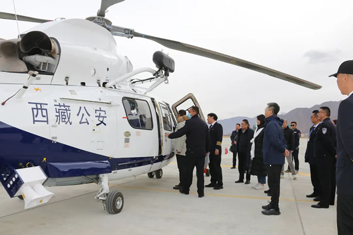 近日,公安部警務飛行處處長梁宏濤率隊赴西藏應急救援基地實地考察調(diào)研。西藏開發(fā)投資集團有限公司黨委書記、董事長、西藏民航發(fā)展投資有限公司董事長祁騰武,區(qū)公安廳、區(qū)發(fā)展改革委、西藏通航公司有關同志陪同調(diào)研。