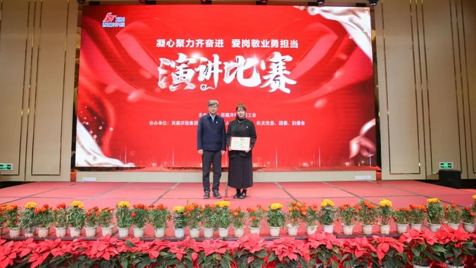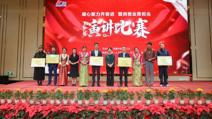 值此中國共產(chǎn)黨成立102周年和集團公司成立十周年之際,為扎實推進學(xué)習(xí)貫徹習(xí)近平新時代中國特色社會主義思想主題教育走深走實,7月13日,由西藏開發(fā)投資集團有限公司工會主辦,黨建工作部(人力資源部)、機關(guān)黨委、團委、婦委會聯(lián)合承辦的“凝心聚力齊奮進 愛崗敬業(yè)勇?lián)?dāng)”主題演講比賽在拉薩邦錦花園酒店成功舉辦。區(qū)黨委宣傳部干部處處長、一級調(diào)研員楊啟宏,區(qū)政府國資委機關(guān)黨委專職副書記卓瑪,區(qū)總工會宣教部四級調(diào)研員王政全等領(lǐng)導(dǎo),集團公司黨委副書記、副董事長、總經(jīng)理劉剛,集團公司黨委委員、董事、總會計師陳焱罡,集團公司黨委委員、區(qū)紀(jì)委監(jiān)委駐集團公司紀(jì)檢監(jiān)察組組長羅布次仁,集團公司黨委委員、副總經(jīng)理、工會主席、機關(guān)黨委書記溫勇出席活動并為獲獎選手頒獎。