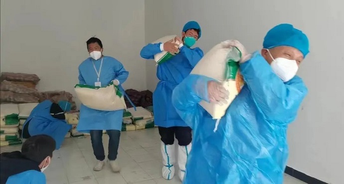 10月3日19時30分接到社區(qū)緊急通知,需對責任區(qū)160戶住戶進行核酸檢測。全隊匆忙寬慰了一下剛應(yīng)付完的饑腸,整理行裝趕赴集合點。受疫情影響,拉薩的夜晚寂靜了很多,既沒有明月繁星點綴,也沒有市井行車喧嘩,偶爾有幾輛執(zhí)勤車也只是燈光刺眼一晃而過。