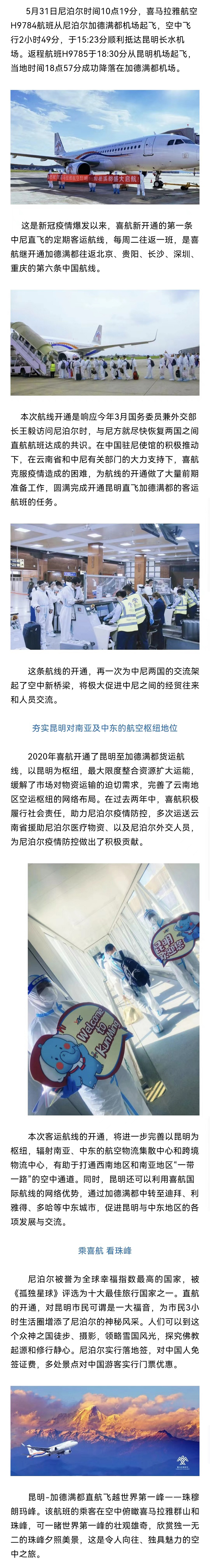 喜航開(kāi)通加德滿都直飛昆明客運(yùn)新航線