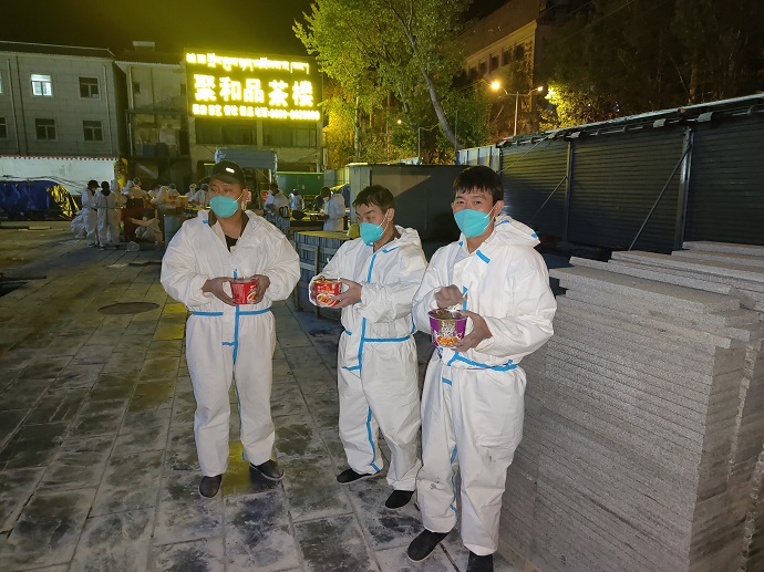 9月15日,接到自治區(qū)國資委及西藏開投集團(tuán)公司通知,拉薩新建方艙醫(yī)院需工程類人員支援,酒店緊急抽調(diào)工程類專業(yè)人員4人前往支援,從15日21時(shí)到次日上午9時(shí)完成了支援任務(wù)。12個(gè)小時(shí)的忙碌下來,每個(gè)人都是汗流浹背,可沒有人抱怨,沒有人喊苦喊累。