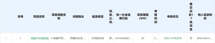 6月21日,國(guó)家電網(wǎng)公布2024年第六批列入可再生能源發(fā)電補(bǔ)貼項(xiàng)目名單,其中西藏開(kāi)投八宿光伏電站發(fā)電項(xiàng)目成功納入國(guó)家光伏電價(jià)補(bǔ)貼目錄。