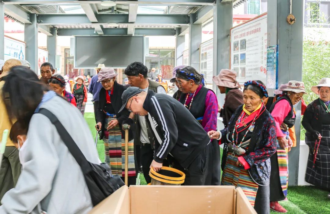 (西藏開投新能源公司員工與現(xiàn)場(chǎng)受慰問老人合影。蔣雨伶 攝)