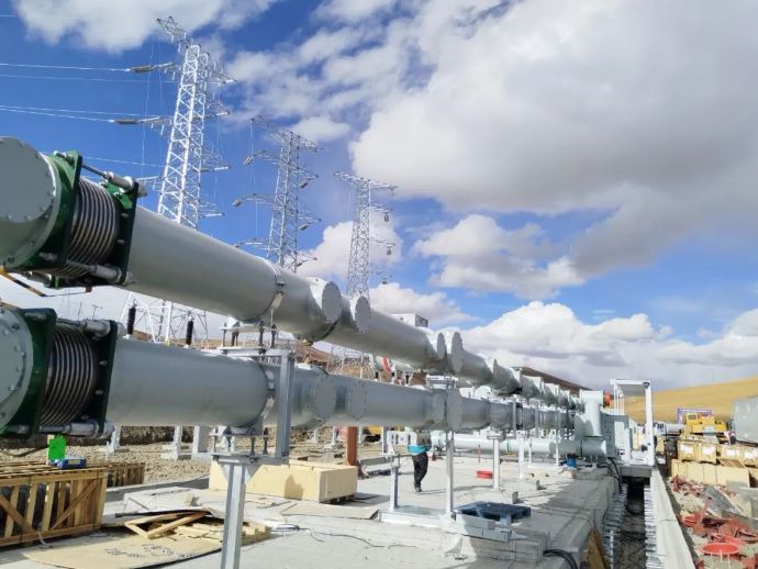 西藏開投色尼區(qū)達嘎普獨立構(gòu)網(wǎng)型儲能電站GIS安裝。(圖由中國電建集團華東院提供)