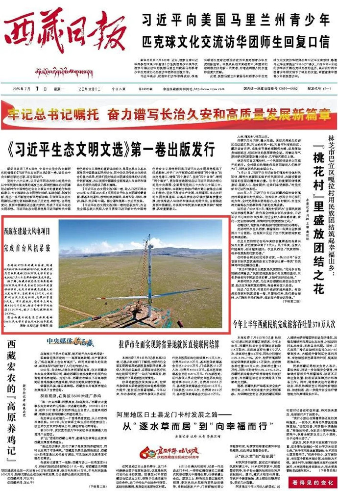 媒體報(bào)道丨西藏在建最大風(fēng)電項(xiàng)目完成首臺風(fēng)力發(fā)電機(jī)組吊裝