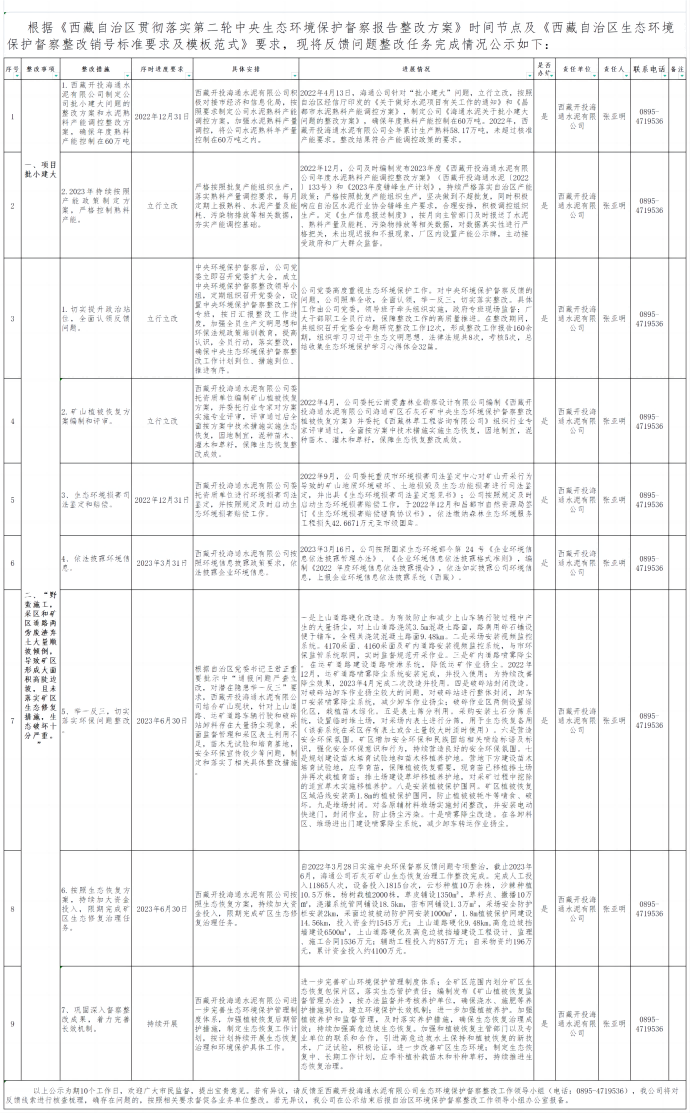 西藏開投海通水泥有限公司關(guān)于第二輪中央生態(tài)環(huán)境保護(hù)督察反饋問(wèn)題整改落實(shí)情況的公示