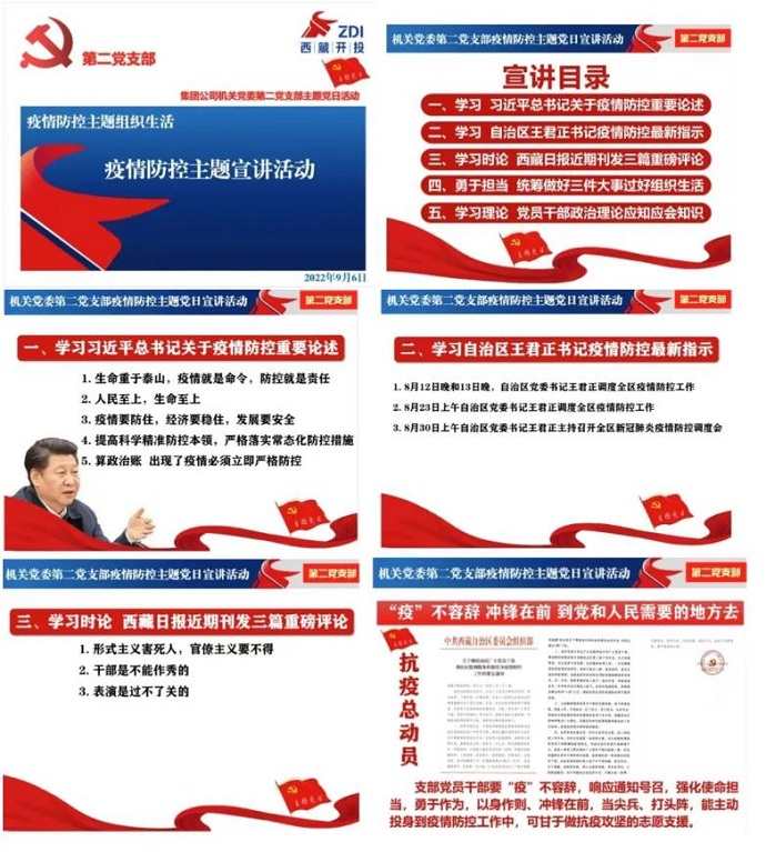 為貫徹落實(shí)區(qū)黨委和區(qū)政府國資委黨委近期工作部署、集團(tuán)公司黨委具體工作要求,結(jié)合疫情防控工作實(shí)際,9月6日下午,中共西藏開發(fā)投資集團(tuán)有限公司機(jī)關(guān)第二支部委員會組織全體黨員開展疫情防控主題黨日宣講活動(dòng)。受疫情影響,活動(dòng)以網(wǎng)絡(luò)視頻形式召開。集團(tuán)公司黨委委員、副總經(jīng)理、工會主席、機(jī)關(guān)黨委書記溫勇同志以普通黨員身份參加活動(dòng)。