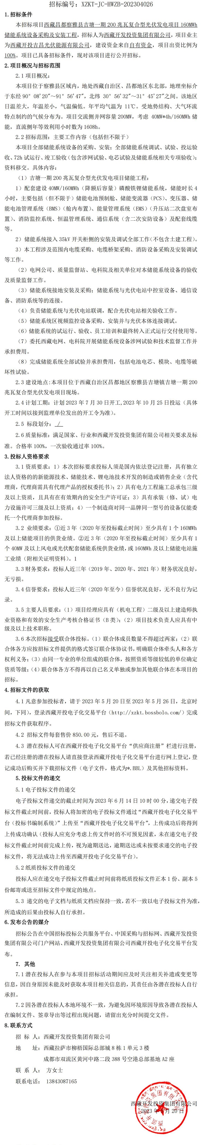 西藏昌都察雅縣吉塘一期200兆瓦復(fù)合型光伏發(fā)電項(xiàng)目160MWh