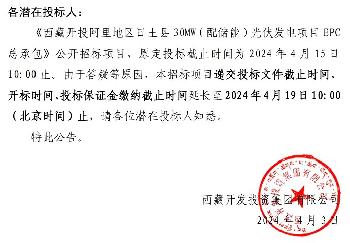 關(guān)于延長《西藏開投阿里地區(qū)日土縣30MW(配儲能)光伏發(fā)電